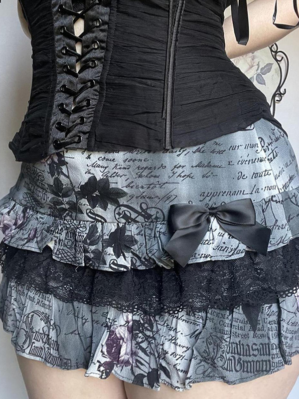 Lace Splicing Ruffles Contrasting Colors Mini Skirts
