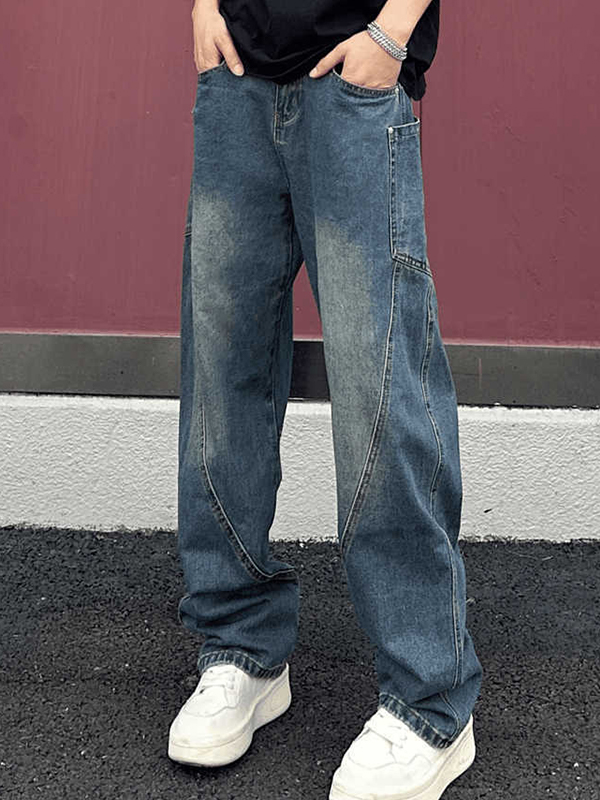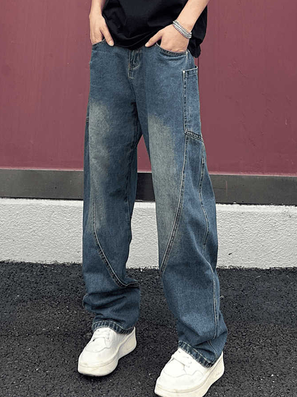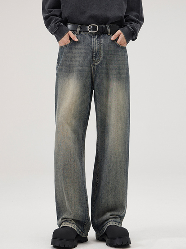 American Retro Heavy Industry Washed Bamboo Pattern Loose Jeans