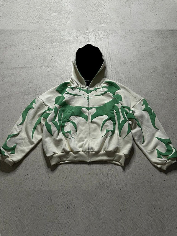 Street Blurred Skull Print Zip Up Oversized Hoodie
