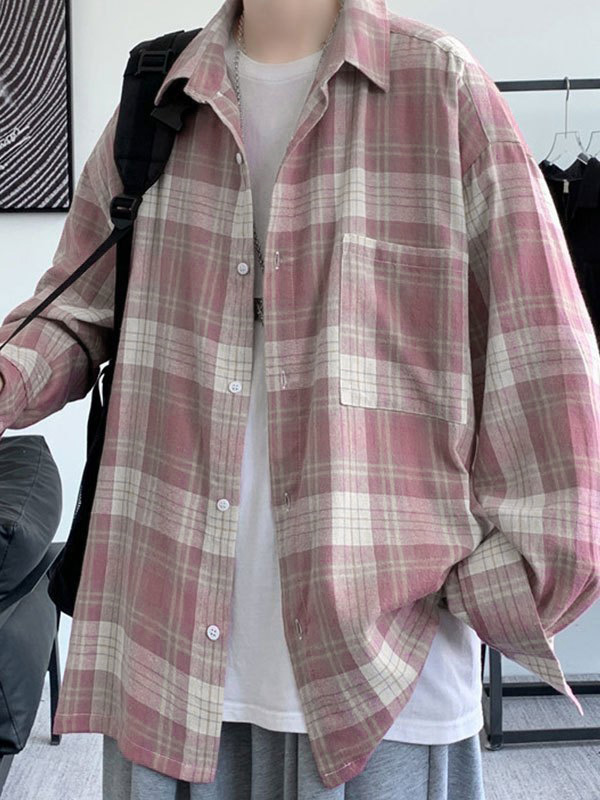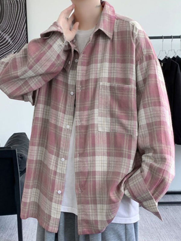 Men’s Vintage Distressed Plaid Long Sleeve Blouse