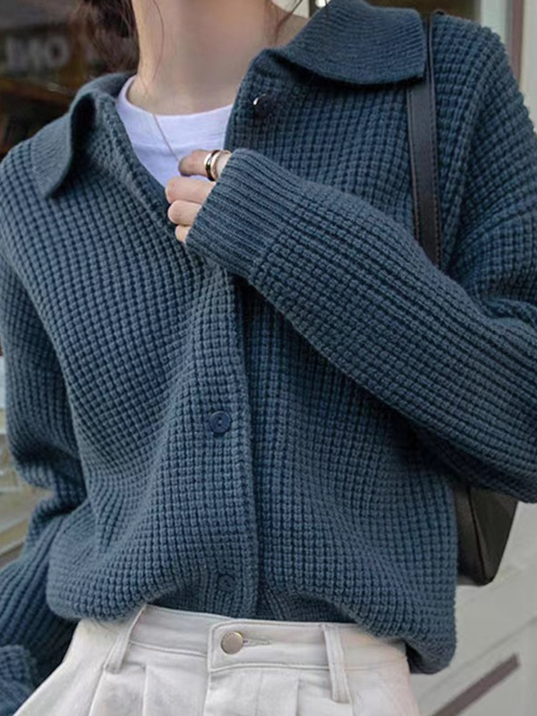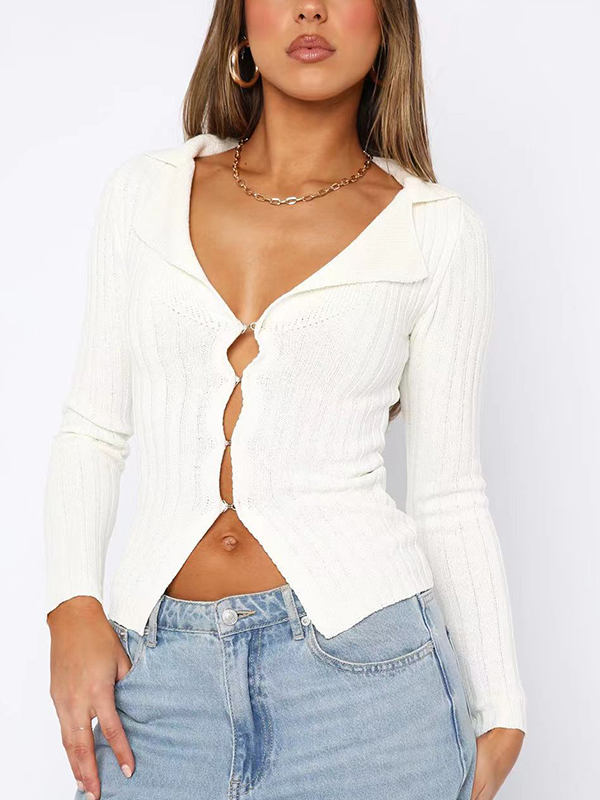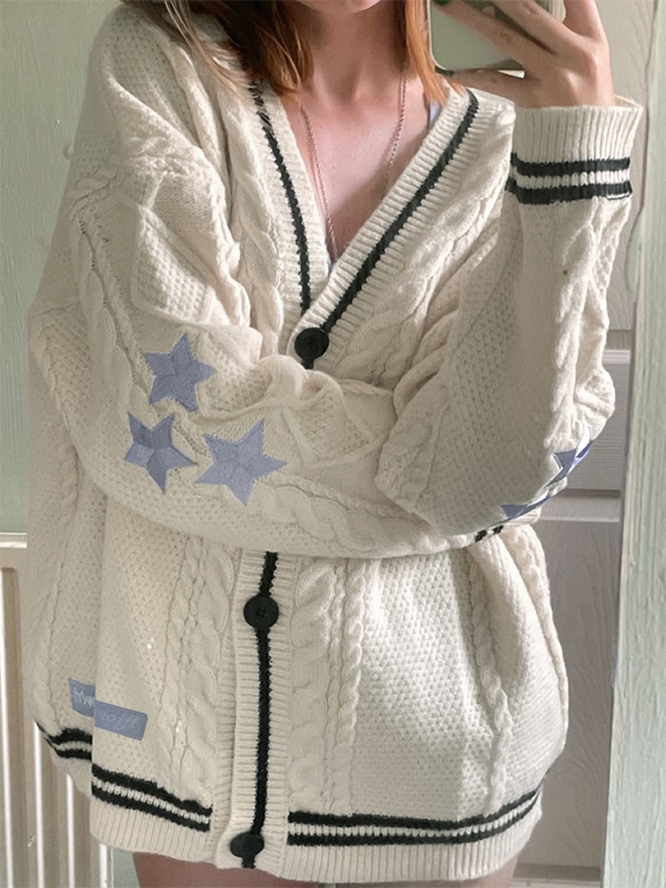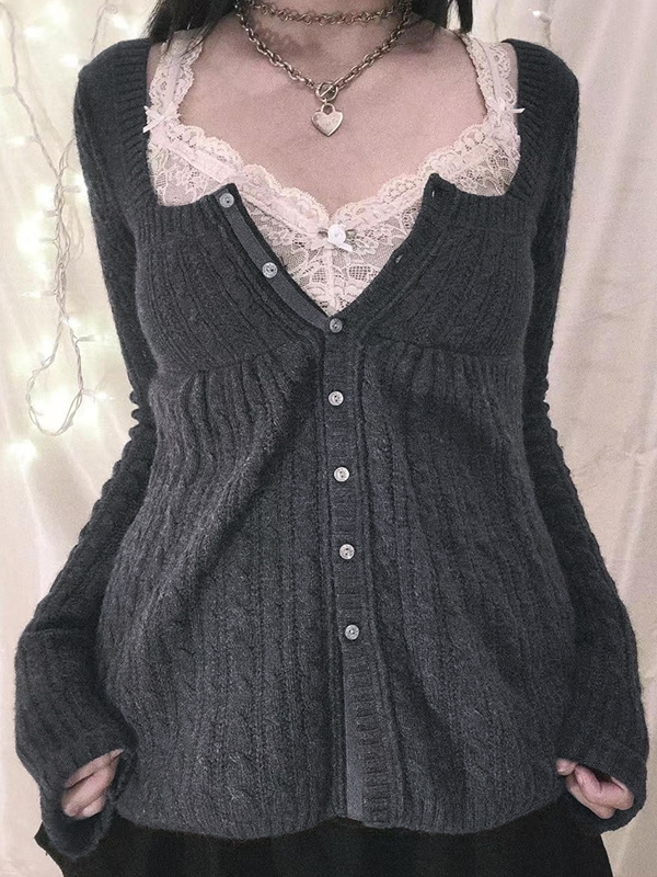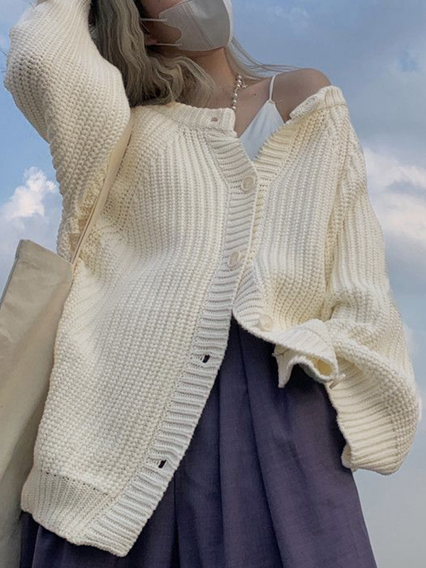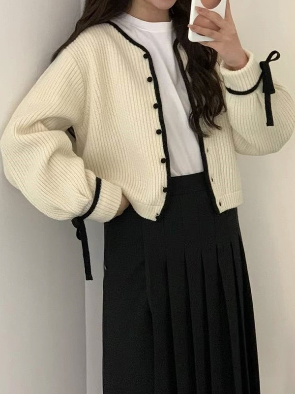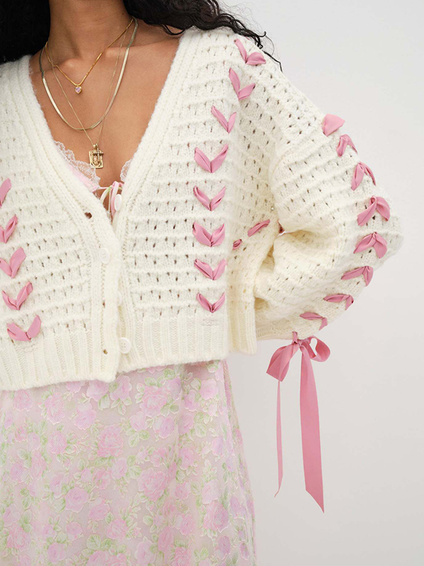 Cutout V Neck Lace Up Loose Short Knit Cardigan