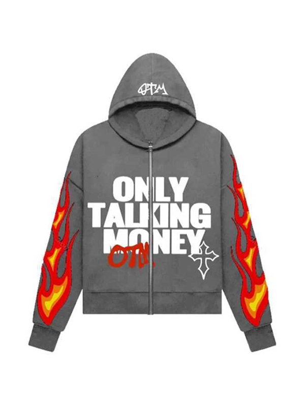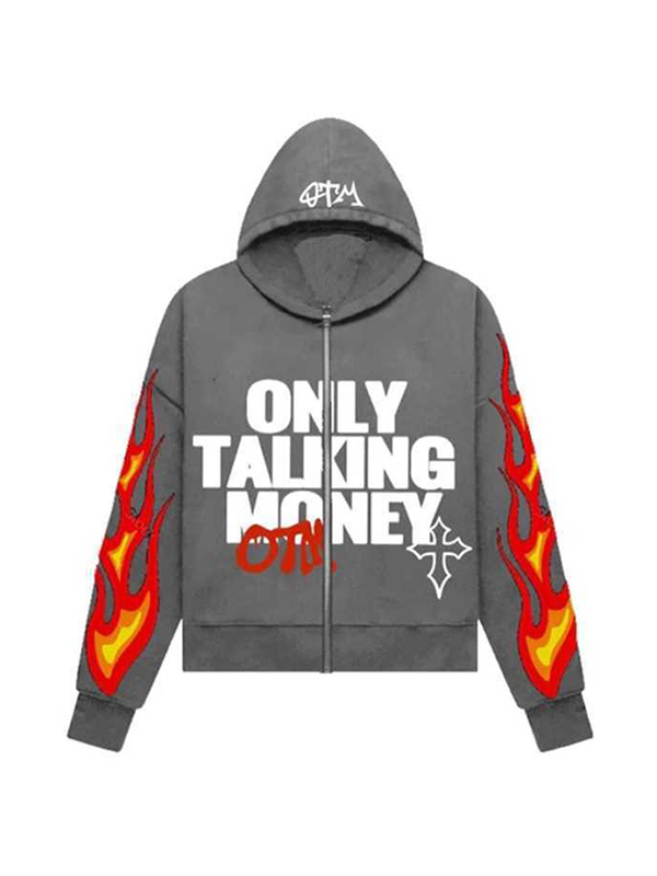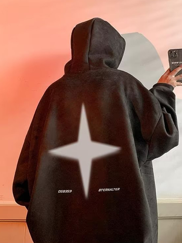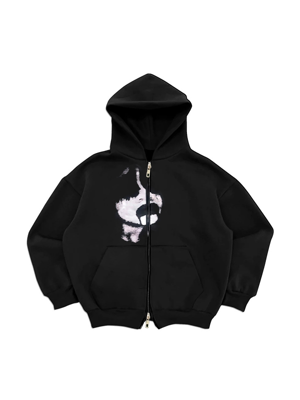 Men’s Street Abstract Print Double Zip Oversized Hoodie