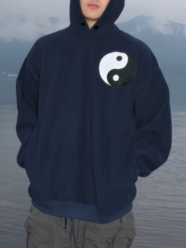 Men’s Yin&Yang Embroidery Print Oversized Hoodie