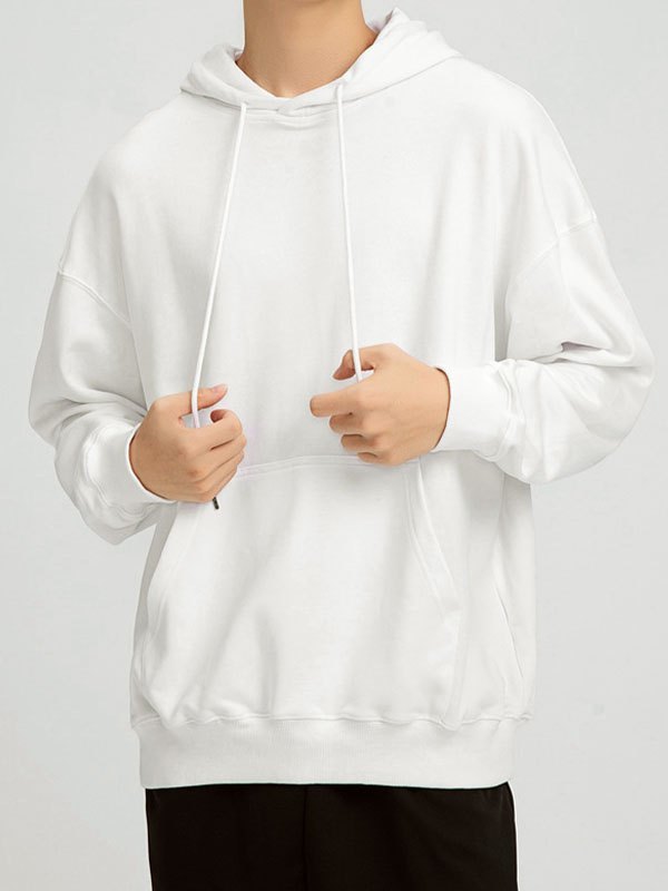 Men’s Solid Color Pure Cotton Drop Shoulder Oversized Hoodie