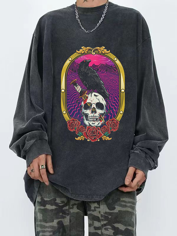 Men’ Vintage Washed Solid Color Long Sleeve Tee