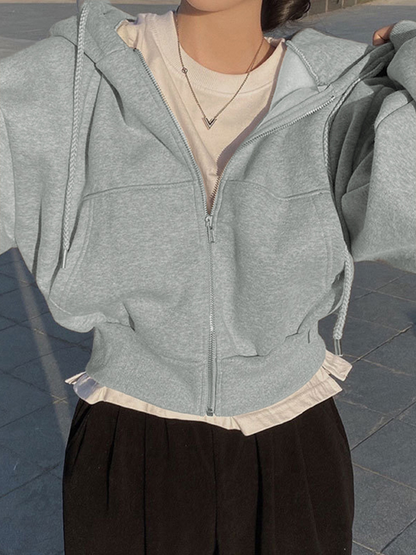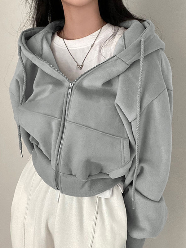 Solid Drawstring Short Oversized Hoodie