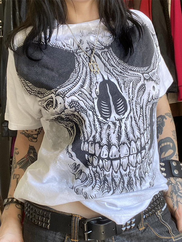 Skull Print Oversized Short Sleeve Tee