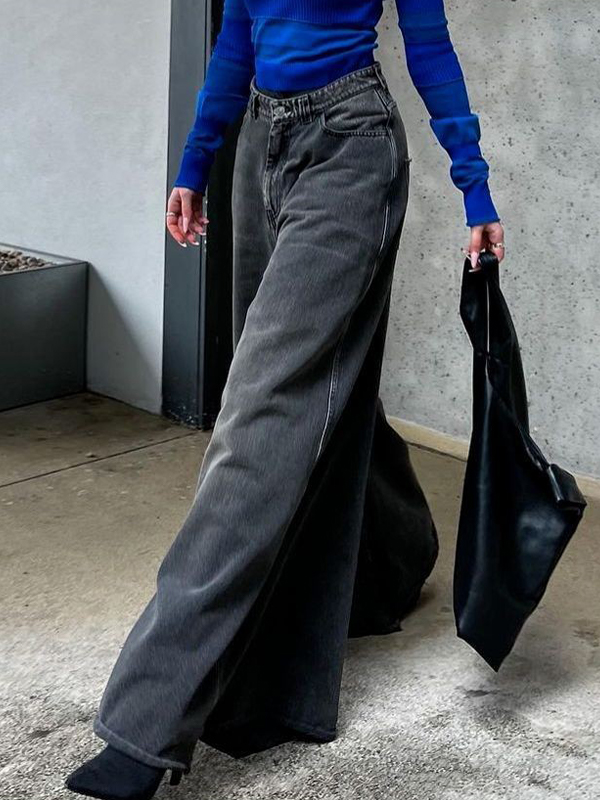 Floor Mopping Gray Niche Versatile Flare Jeans