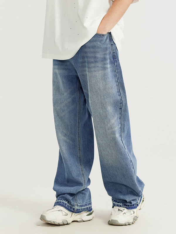 Washing Work Clothes With Wide Legs Loose Jeans
