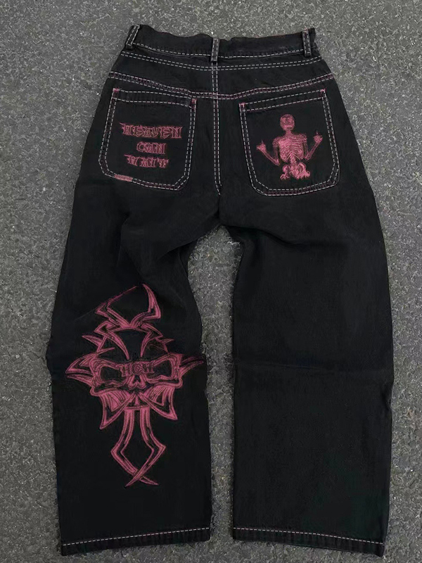 Fully Embroidered Skull Boyfriend Jeans
