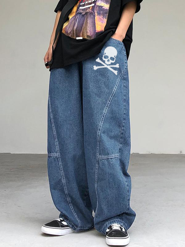 Men’s Skull Print Loose Casual Loose Jeans
