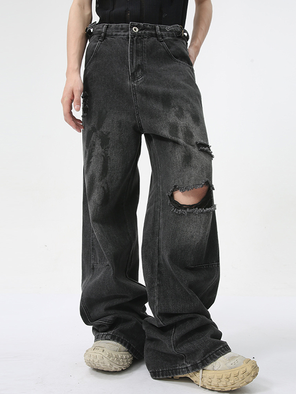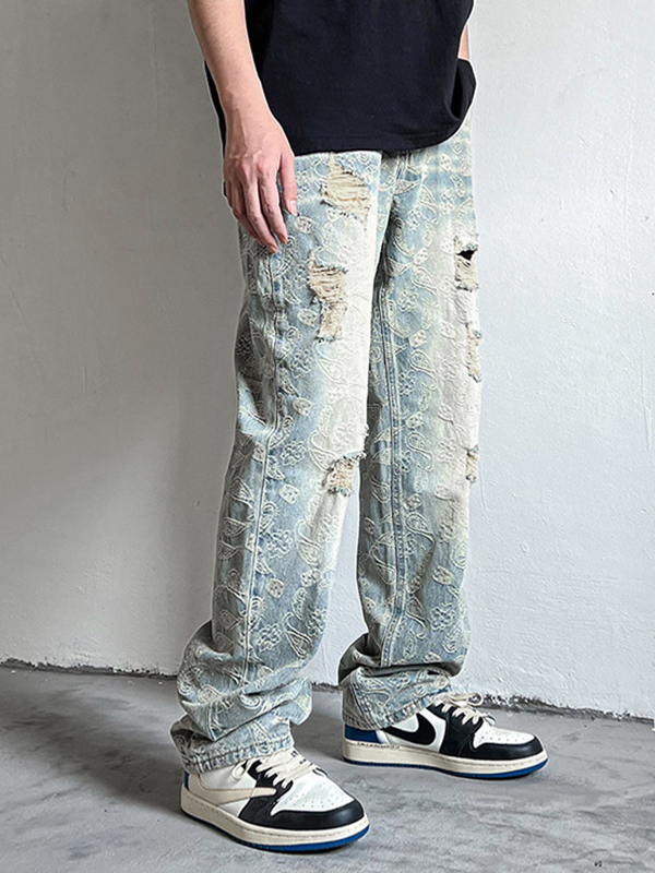 Men’s Cashew Flower Print Ripped Loose Jeans