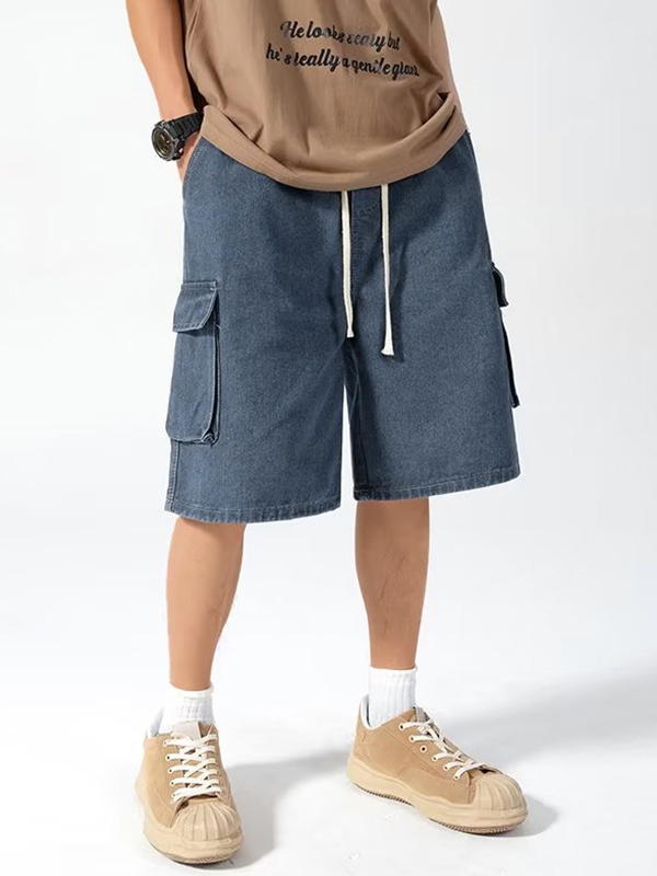 Men’s Denim Cargo Pocket Drawstring Shorts