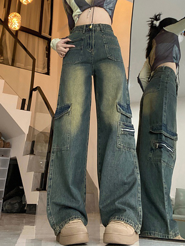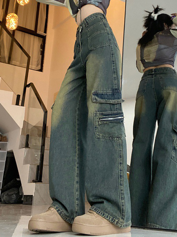 American Retro Cat Whiskers Straight Loose Jeans