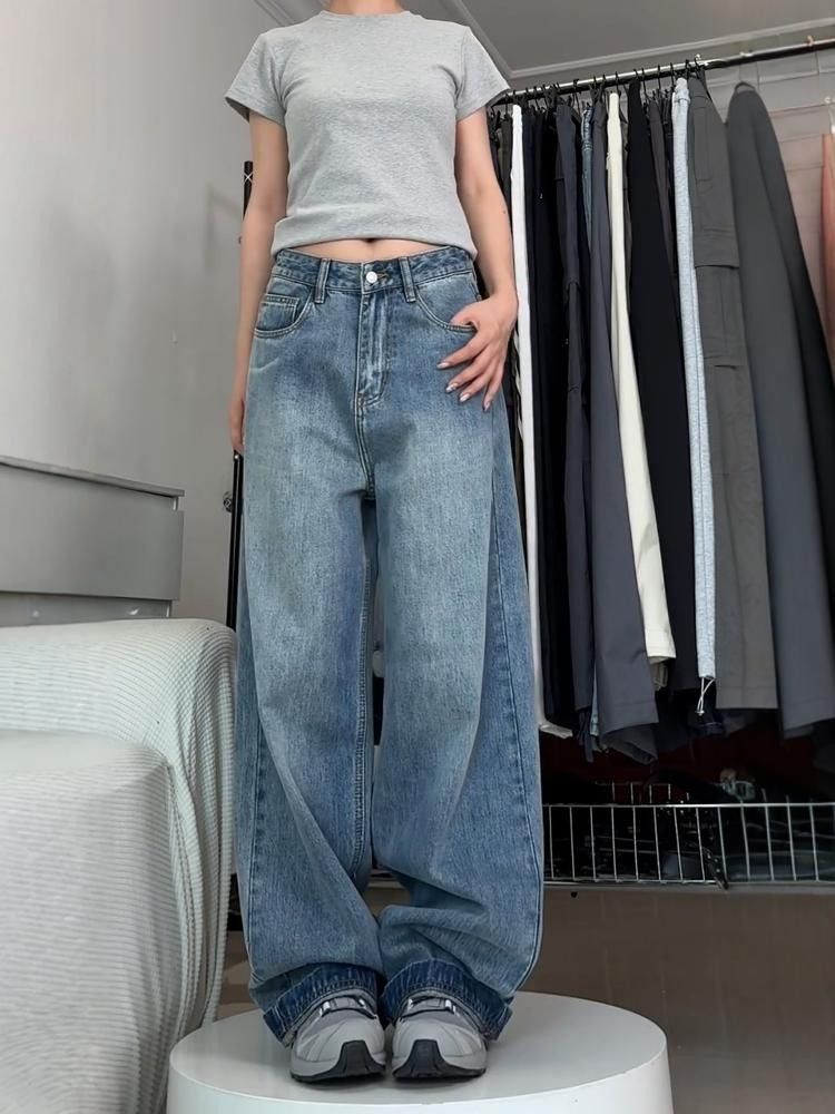 Men’s Washed and Aged Micro Zip Loose Jeans