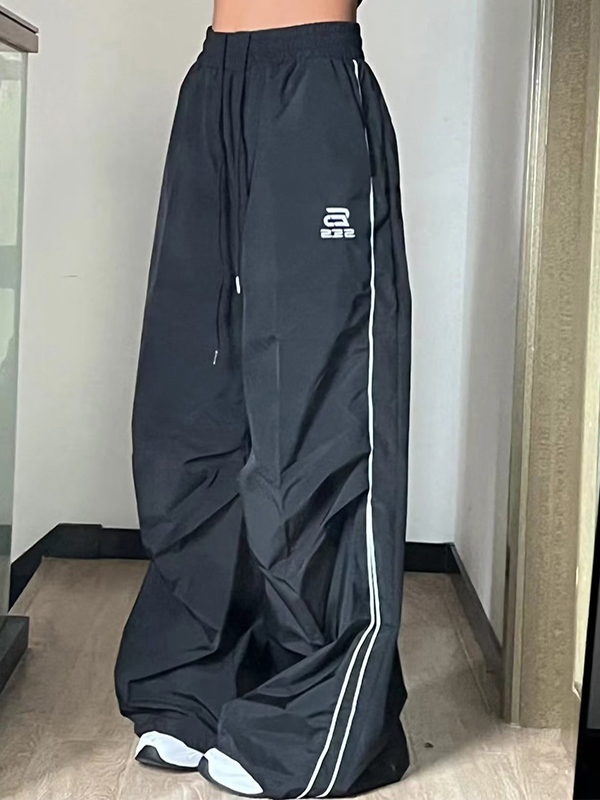 Vintage Piping Wide Leg Parachute Pants