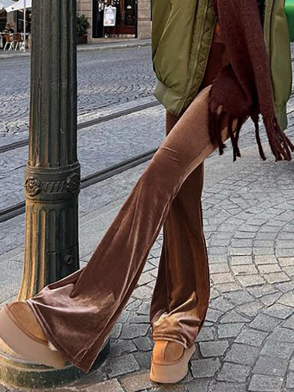 Solid Velvet Elastic Waist Flare Leg Pants