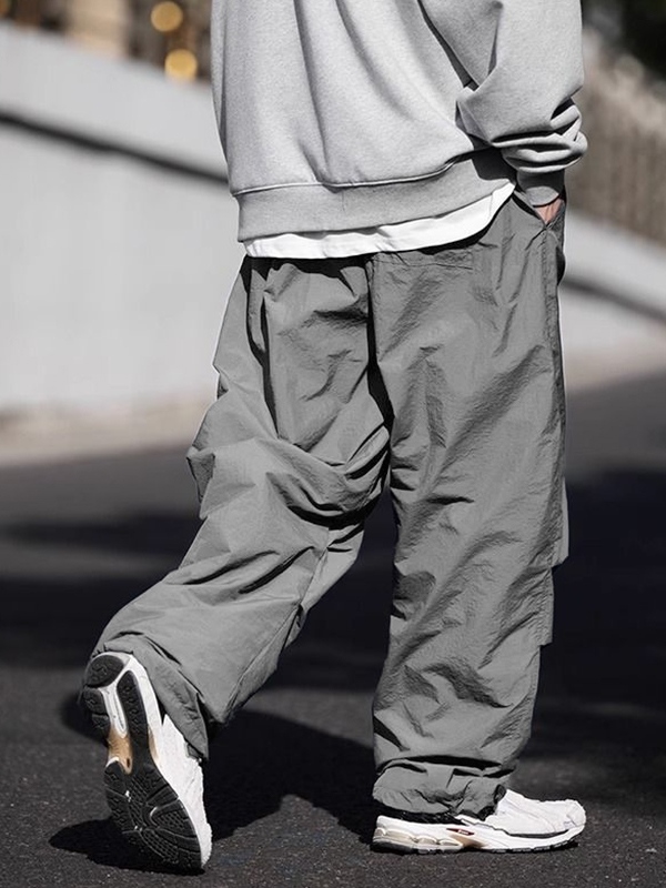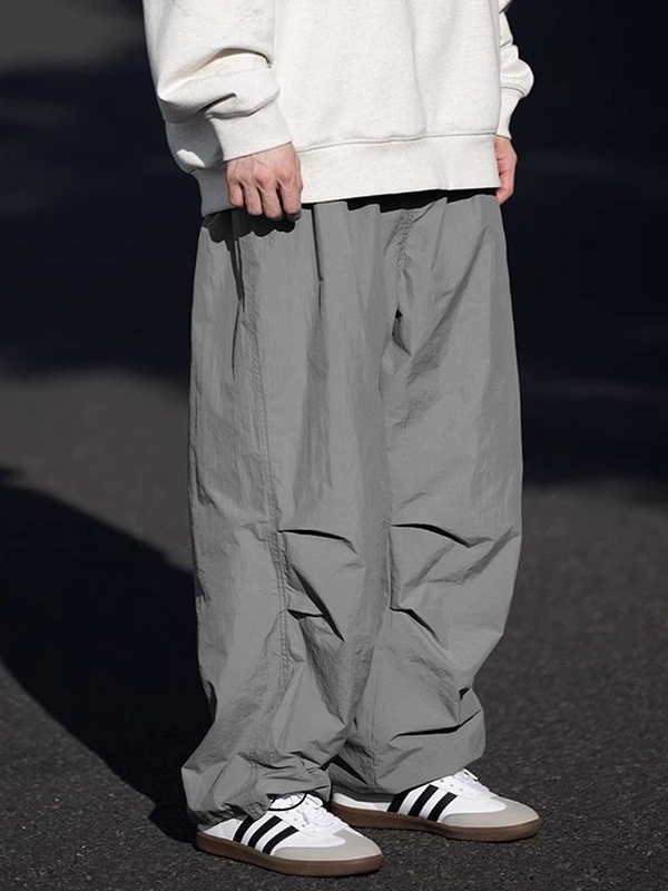 Men’s Ruched Bound Feet Parachute Wide Leg Pants