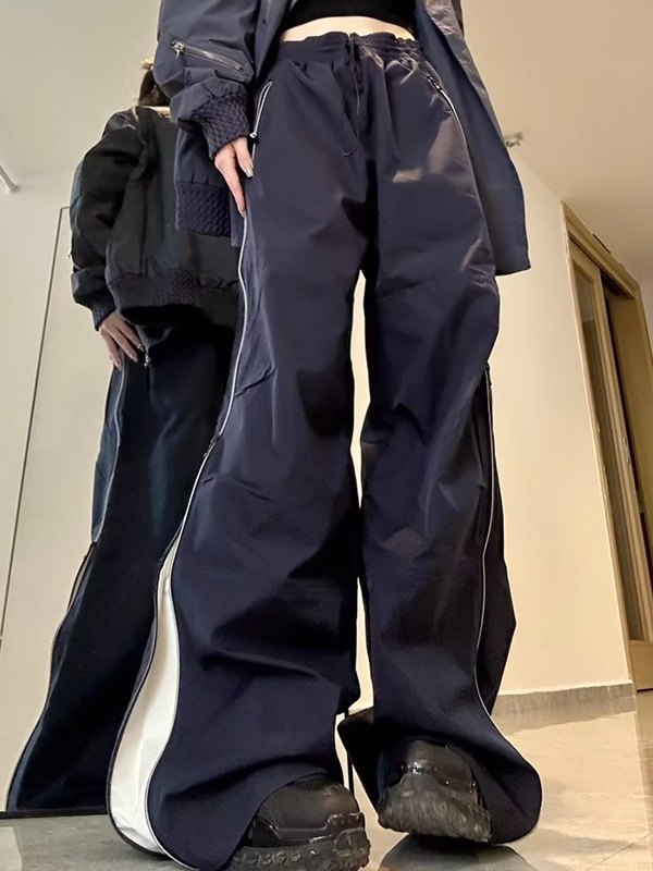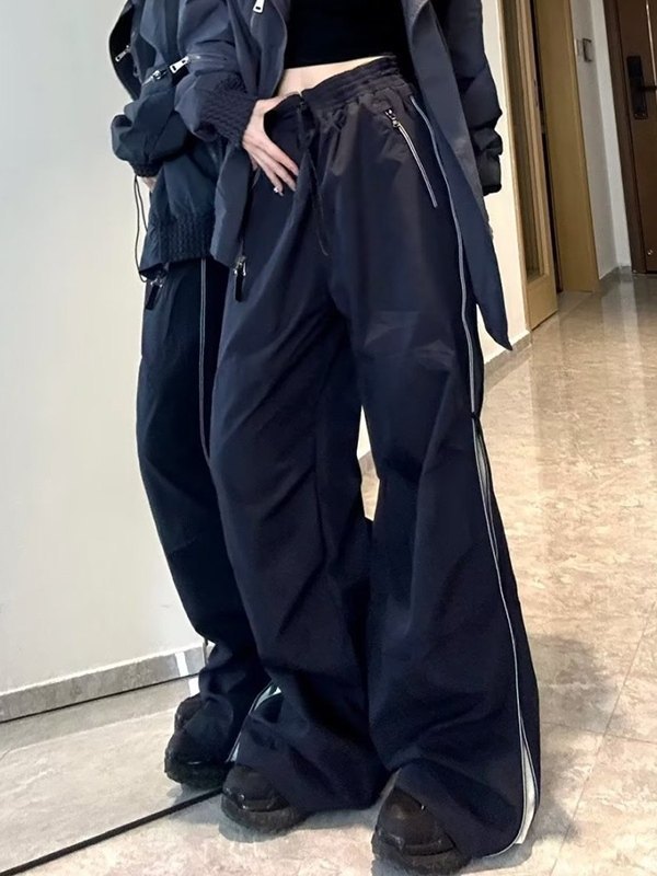 Vintage Side Zipper Parachute Wide Leg Pants