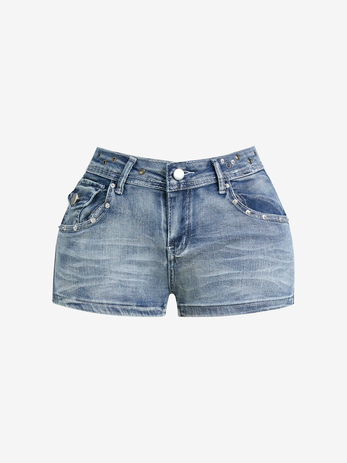 Washed-Out Aged Denim Shorts
