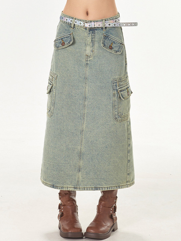 Multiple Pocket Back Slit Cargo Maxi Skirt