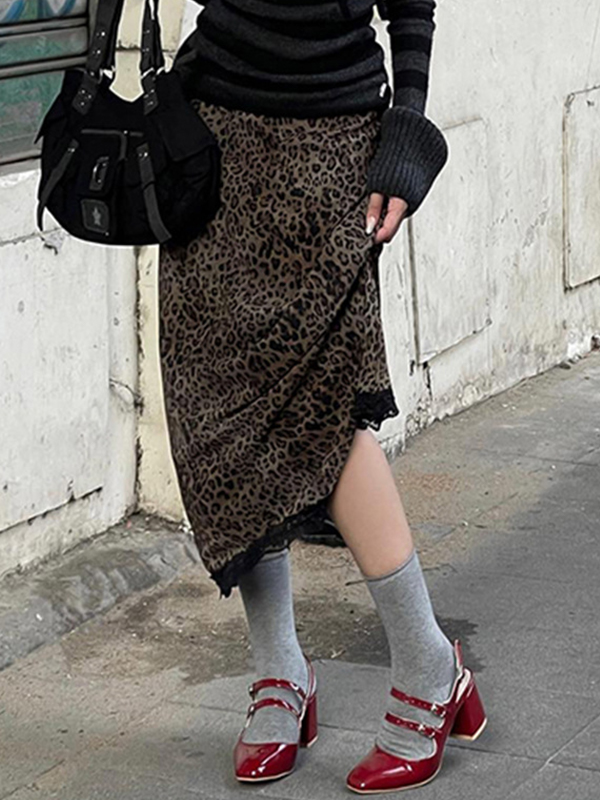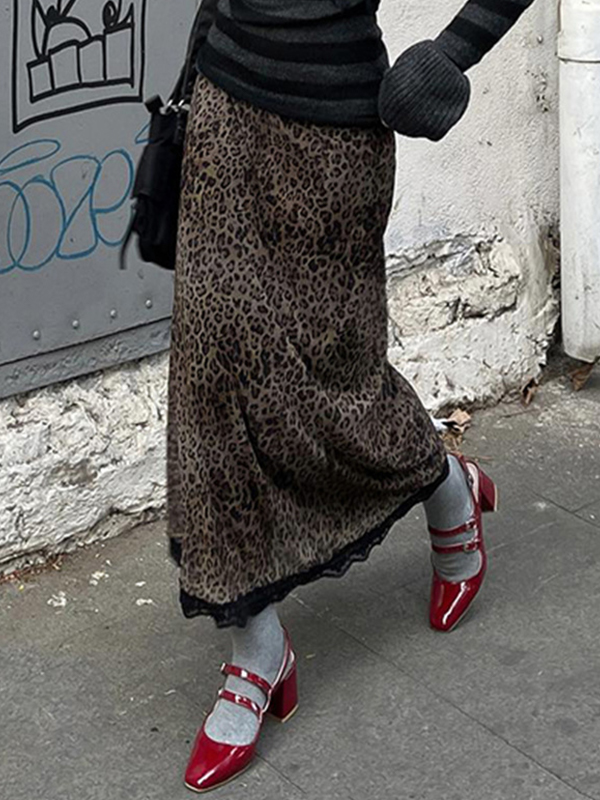 Vintage Leopard Patchwork Lace Maxi Skirts