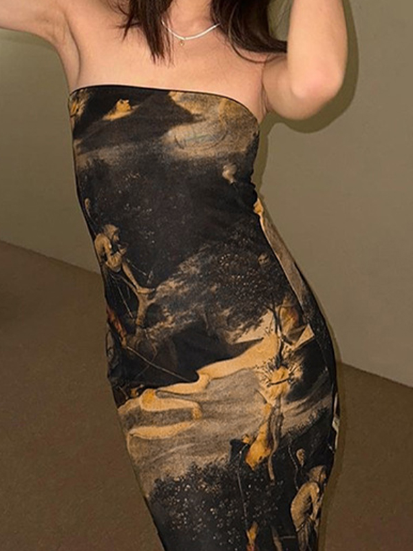 Sleeveless Bandeau Pleated To Cover Hips Maxi Dresses
