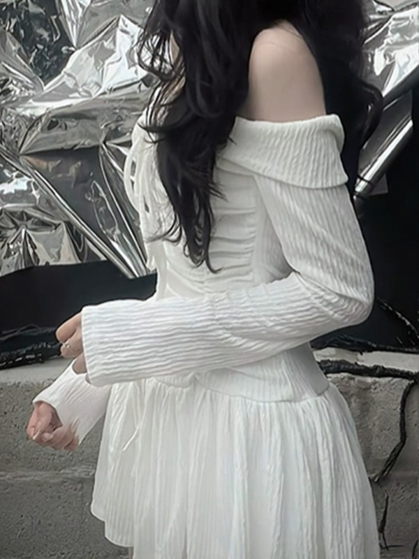 One Shoulder Solid Color Backless Long Sleeves Mini Dresses
