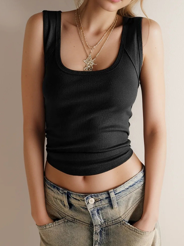 Square Neck Long Sleeve Slit Long Sleeve Tee