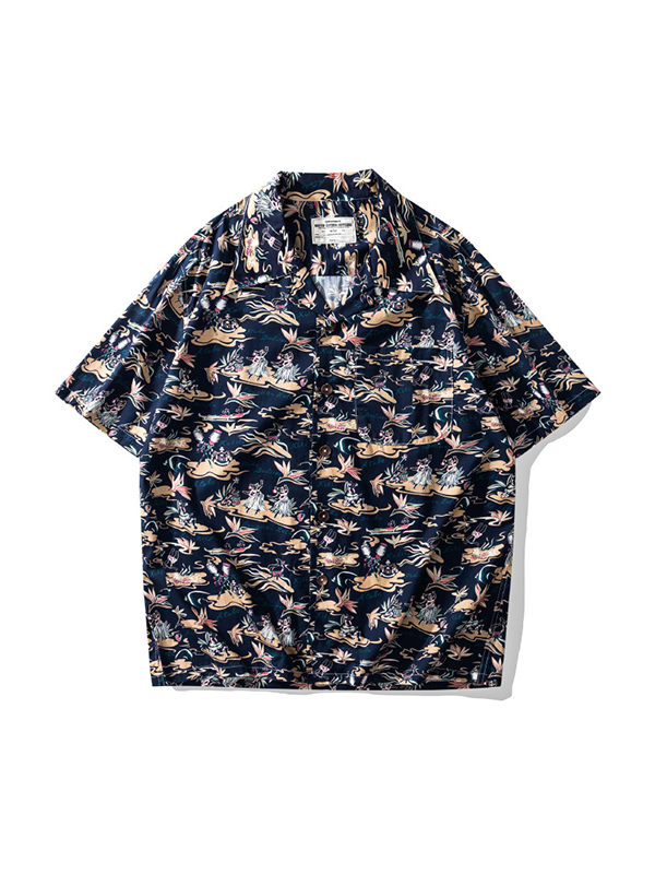 Men’s Vintage Printed Short Sleeve Button Down Shirt