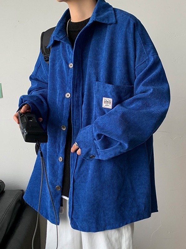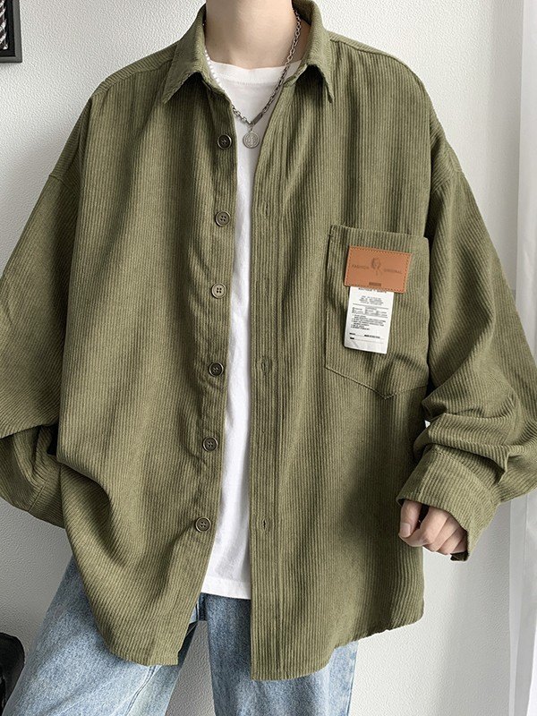 Men’s Simple Pocket Corduroy Long Sleeve Shirt