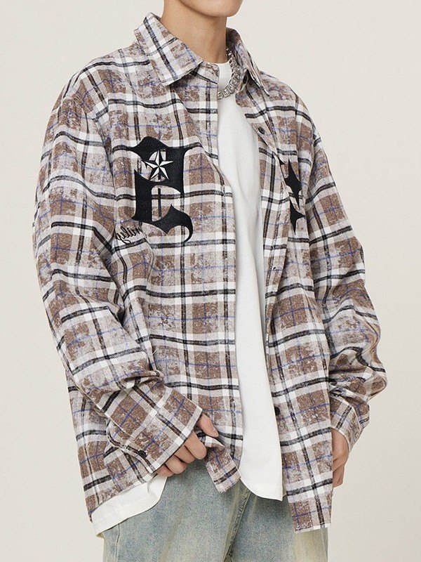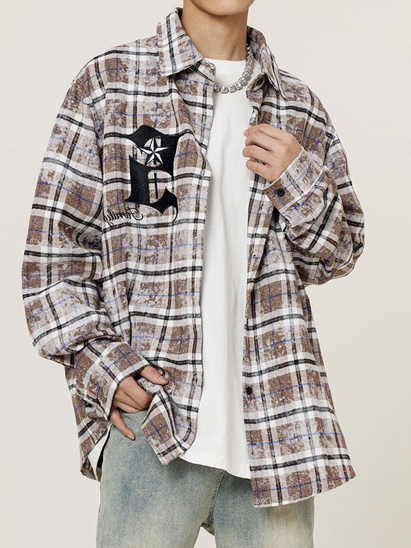 Men’s Vintage Distressed Plaid Long Sleeve Blouse