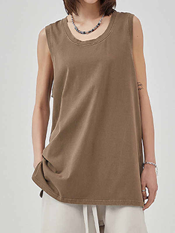 Washed Distressed Hem Slit Tank Top
