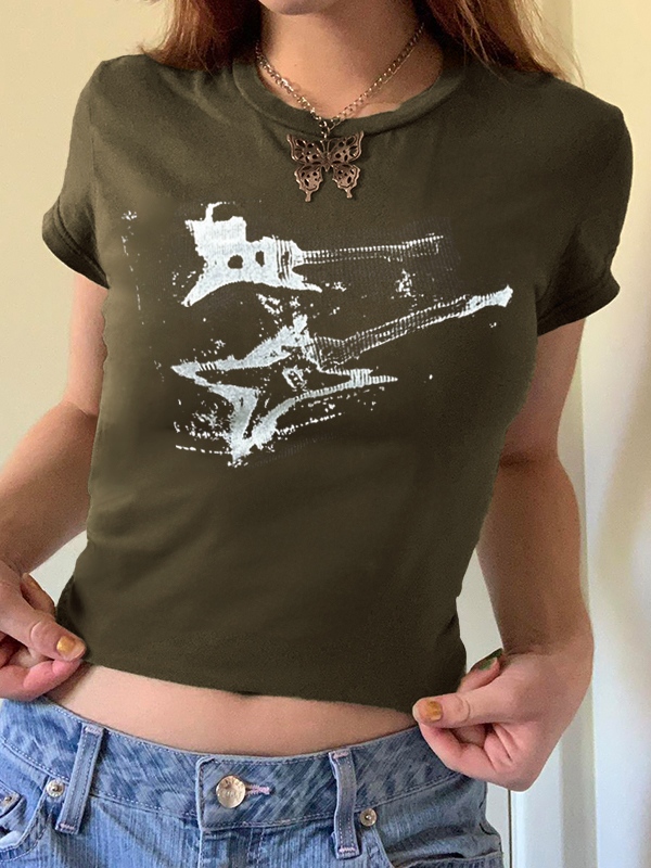 Lettering Raglan Sleeve Print Short Sleeve Tee