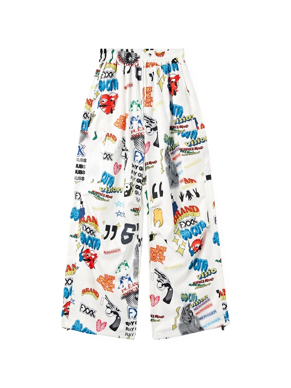 Men’s Interesting Graffiti Print Wide Leg Pants