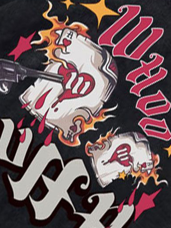 Men’s Distressed Print Tattered Hem Hooded Short Sleeve Tee