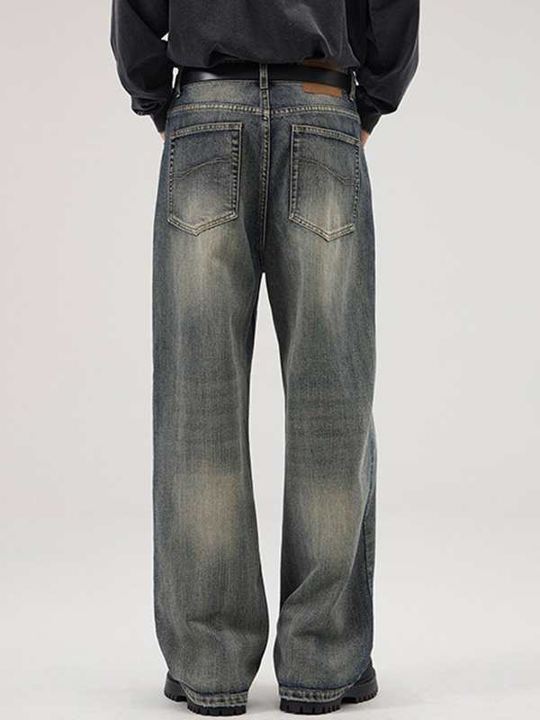 American Retro Heavy Industry Washed Bamboo Pattern Loose Jeans