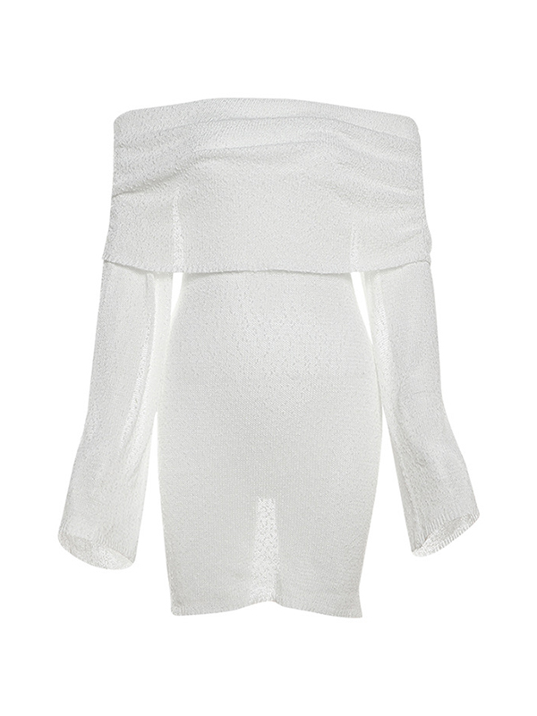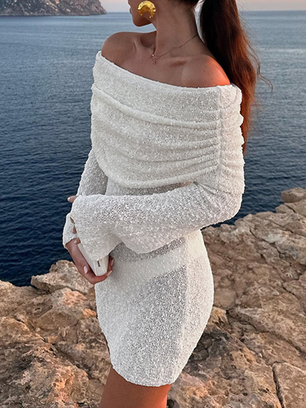 One Shoulder Solid Color Backless Long Sleeves Mini Dresses