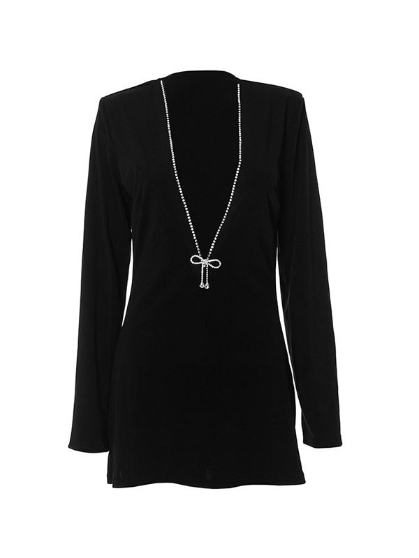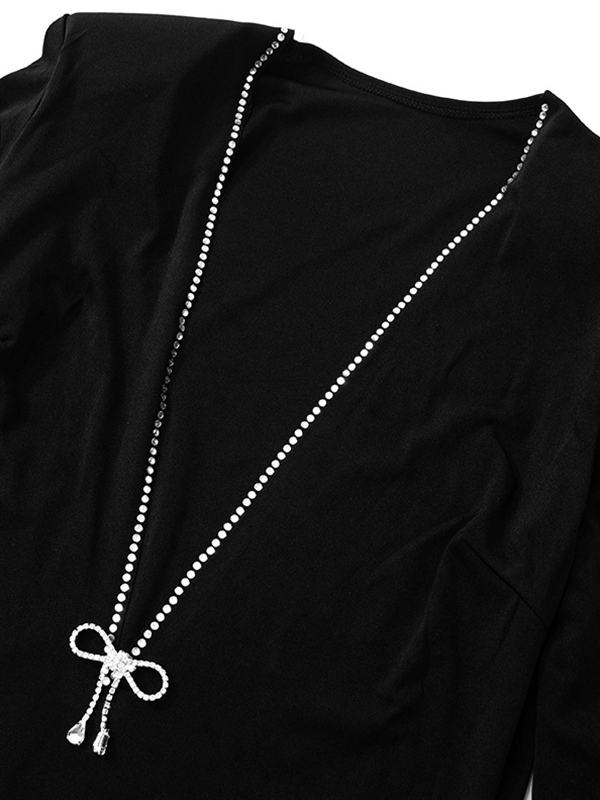 Be the first to review “Rhinestone Trim V Neck Mini Dress”