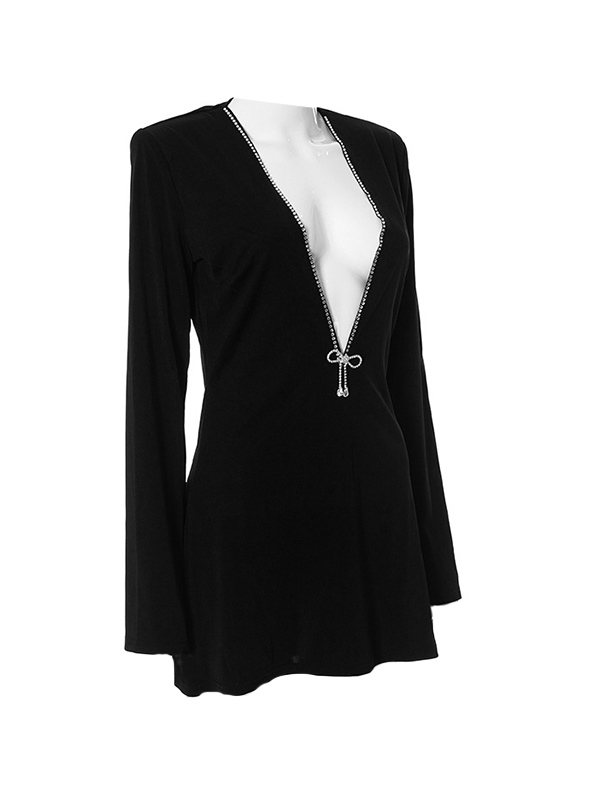 Rhinestone Trim V Neck Mini Dress