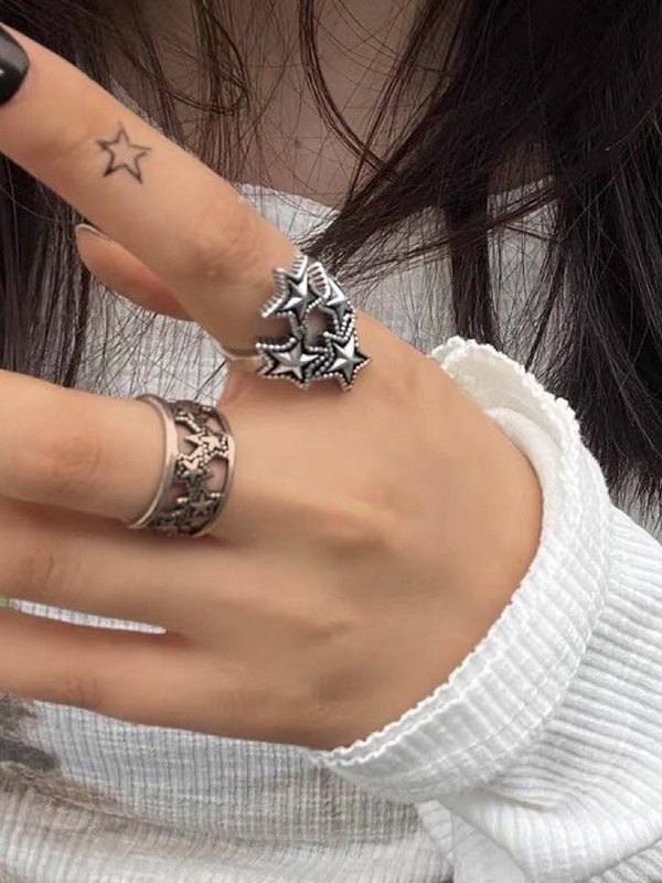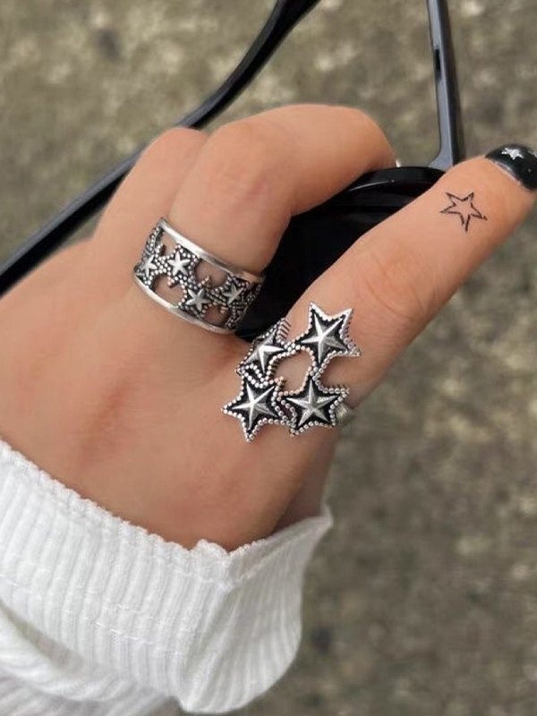Vintage Star Pattern Silver Ring