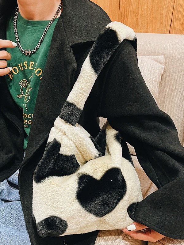Heart Pattern Fuzzy Shoulder Bag