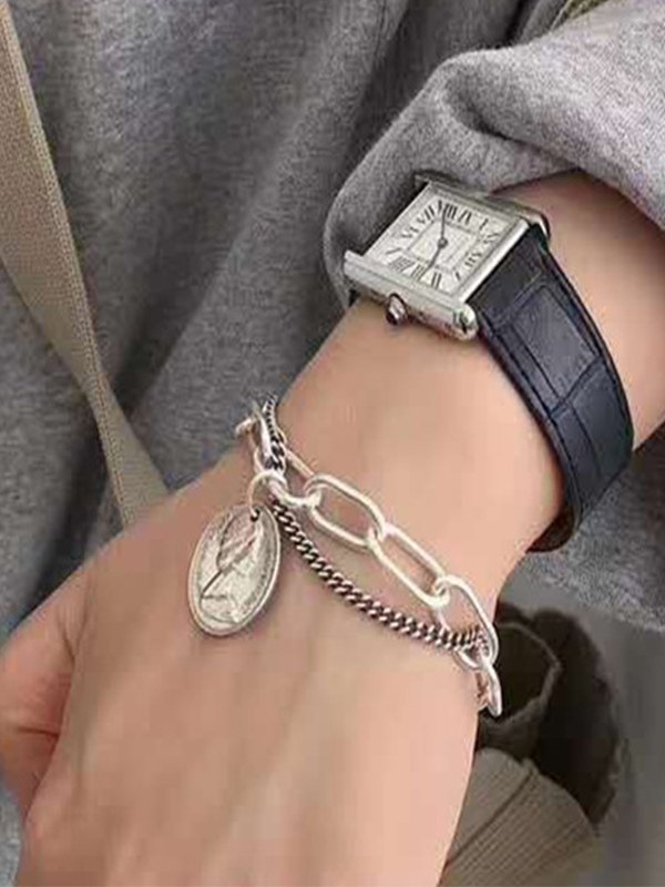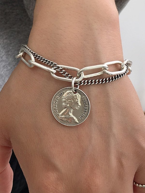 Double Layered Chain Coin Pendant Toggle Bracelet