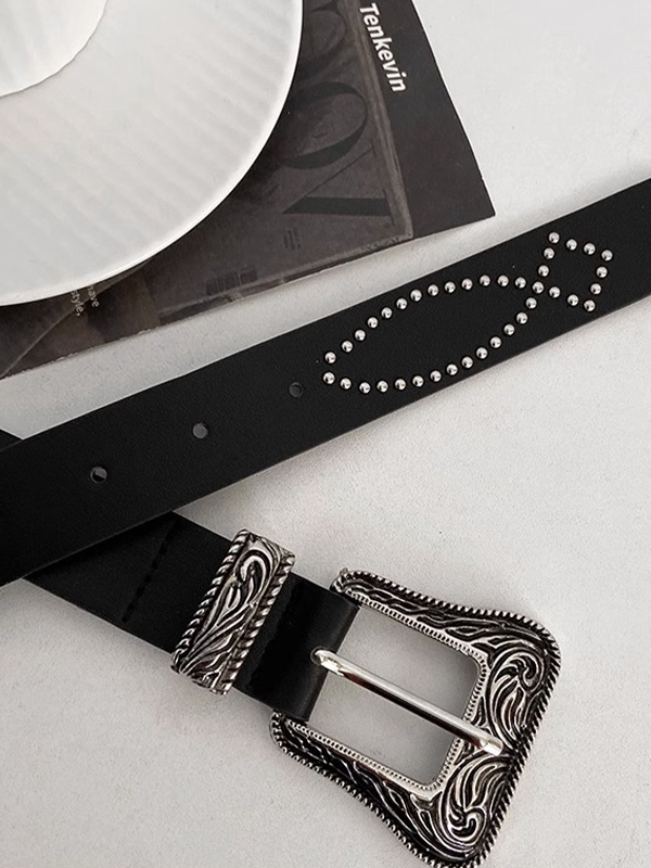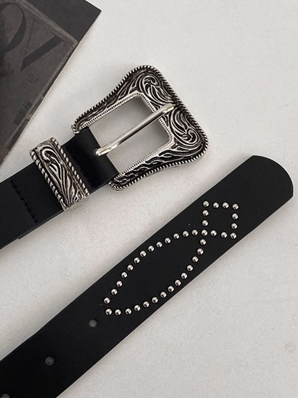 Grunge Rivet Decor Engraved Buckle Thin Belt