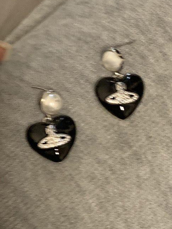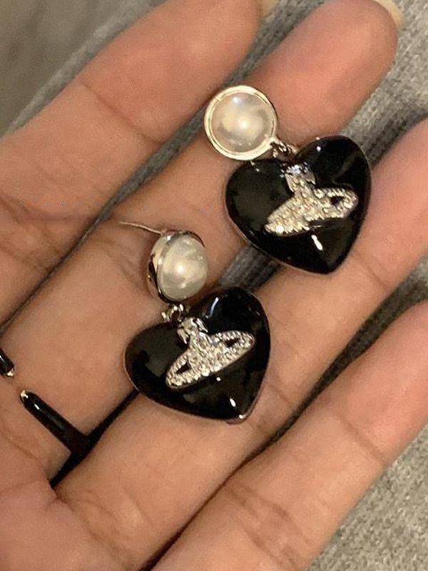 Black Heart Saturn Diamond Engraved Stud Earring