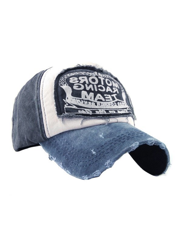 Letter Embroidered Distressed Denim Baseball Cap