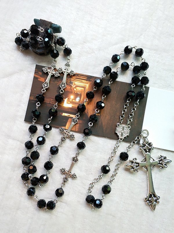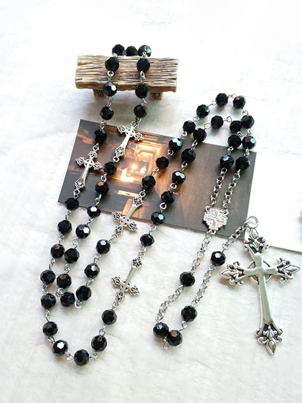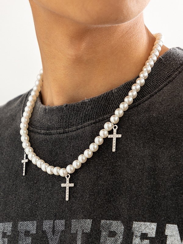 Men’s Rhinestone Cross Faux Pearl Necklace