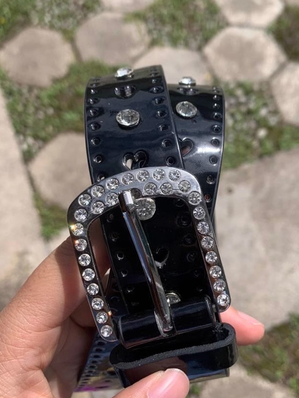 Y2K Heart Cutout Shiny Rhinestone Buckle Belt