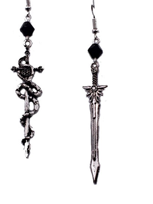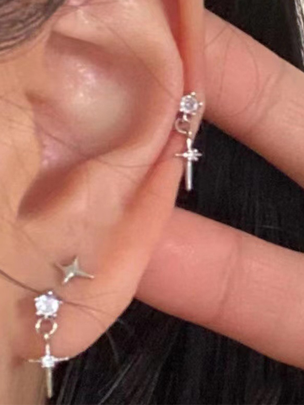 Punk Cross Heart Bow Charm Chain Cuff Earring