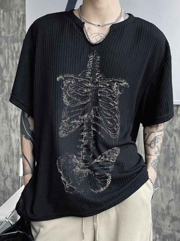 Men’s Distressed Print Tattered Hem Hooded Short Sleeve Tee
